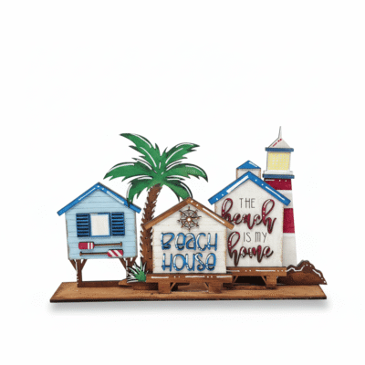 Enjoy a relaxing creative experience with this Beach House Shelf Sitter DIY craft kit. This unfinished wood kit is perfect for creating personalized home decor that adds a handmade touch to any room in your house. Whether you are a beginner or an experienced crafter, you will love the smooth finish and professional quality of this laser cut wood kit.