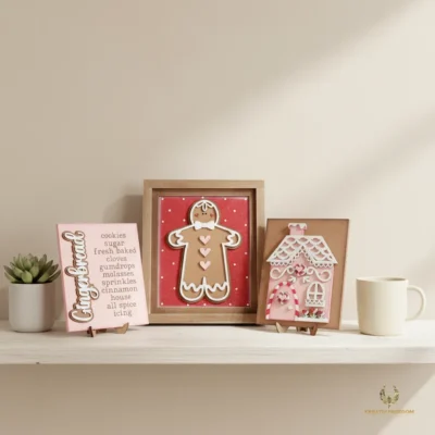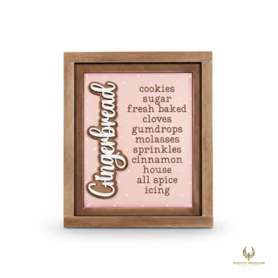 Elevate your holiday home styling with our Gingerbread Christmas Decor. This delightful trio of signs is perfect for creating a cozy, festive atmosphere on tiered trays, mantels, or as a charming centerpiece for your Christmas gatherings. Designed as part of the Kreative Freedom collection, these pieces capture the whimsical spirit of the season while providing a high-quality base for your artistic vision.