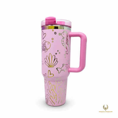 The Mermaid Tail with Ocean Life theme adds a touch of whimsy and magic to your day, while the rainbow engrave adds a pop of color and style. Plus, the convenient handle makes it easy to carry with you wherever you go.