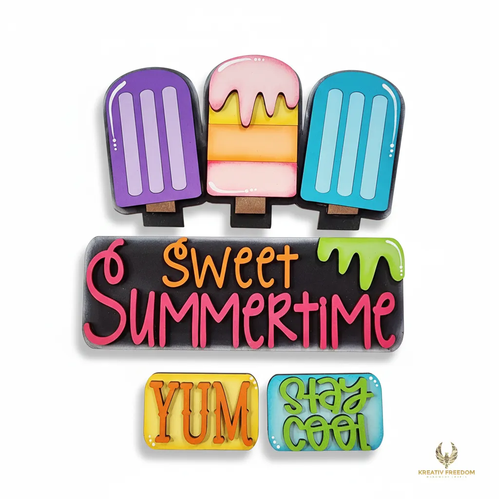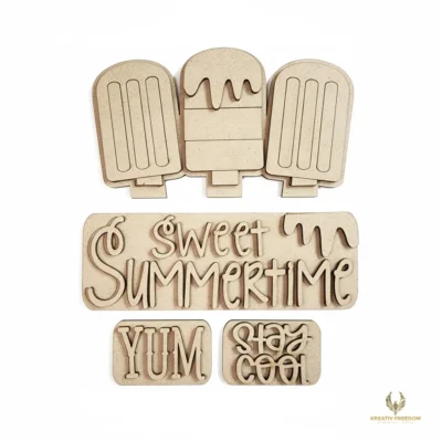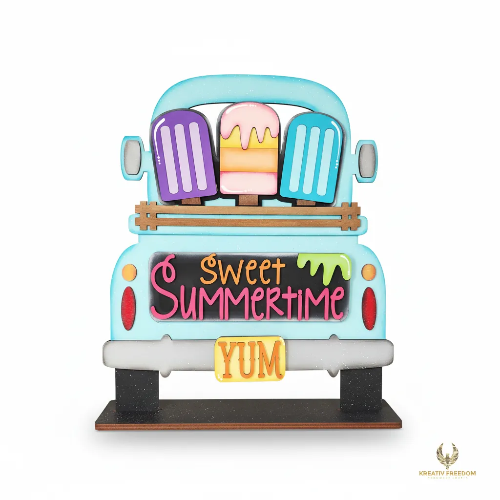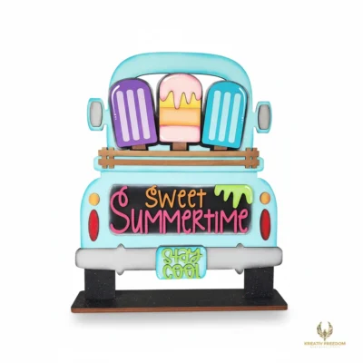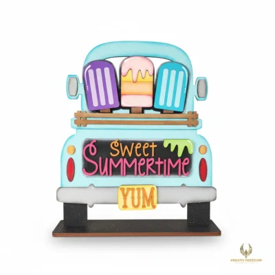 Welcome the Sweet Summertime vibes with our Popsicle Truck Wood Cutout. This charming piece from the Kreativ Freedom Monthly Collection is designed to be the highlight of your summer decor, offering a fun and creative project for all skill levels, whether you are decorating a tiered tray or a mantle.